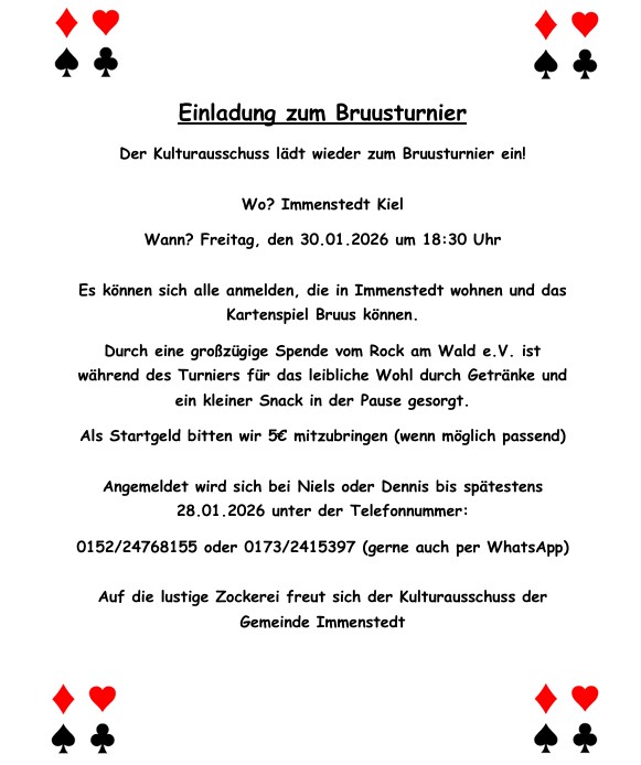 Der Kulturausschuss lädt wieder zum Bruusturnier ein. Schnell anmelden...