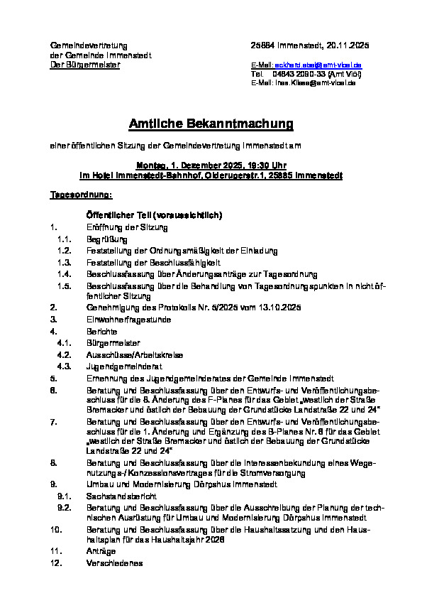 Einladungen Sitzungen 2025 Open category in new window 2024 Open category in new window 2023 Open category in new window 2022 Open category in new window 2021 Open category in new window 2020 Open category in new window 2019 Open category in new window Anzeige: Aufsteigend Absteigend Sortieren nach Titel Datum Reihenfolge Einladung Gemeinevertretersitzung 6/2025 263.49 KB 23.11.2025 Speichern Ansicht